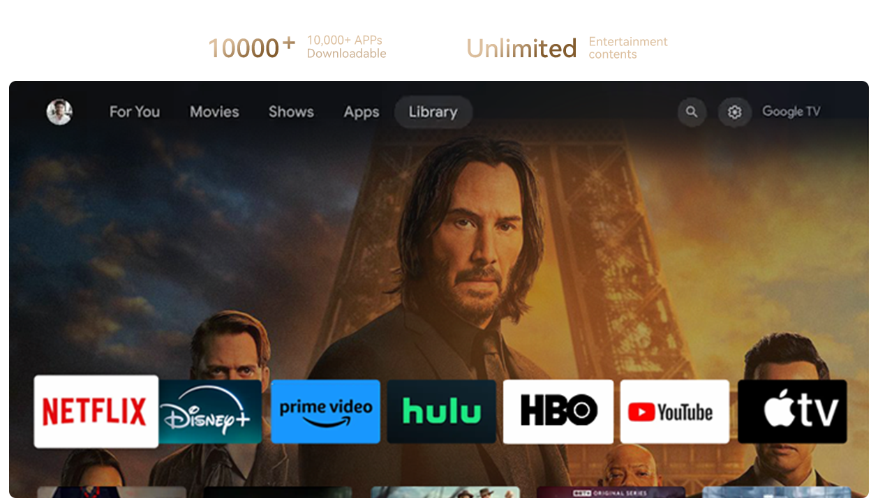 - Suporte 4K online: streaming direto da Netflix/Disney+