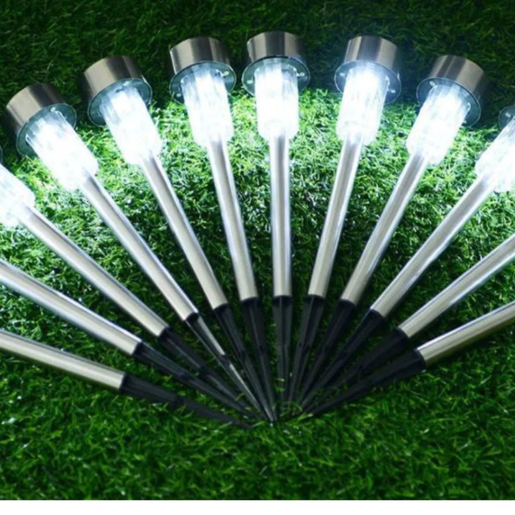 O Kit de Espeto Solar para Jardim basta fincar no chão e pronto: Jardim iluminado no mesmo instante.