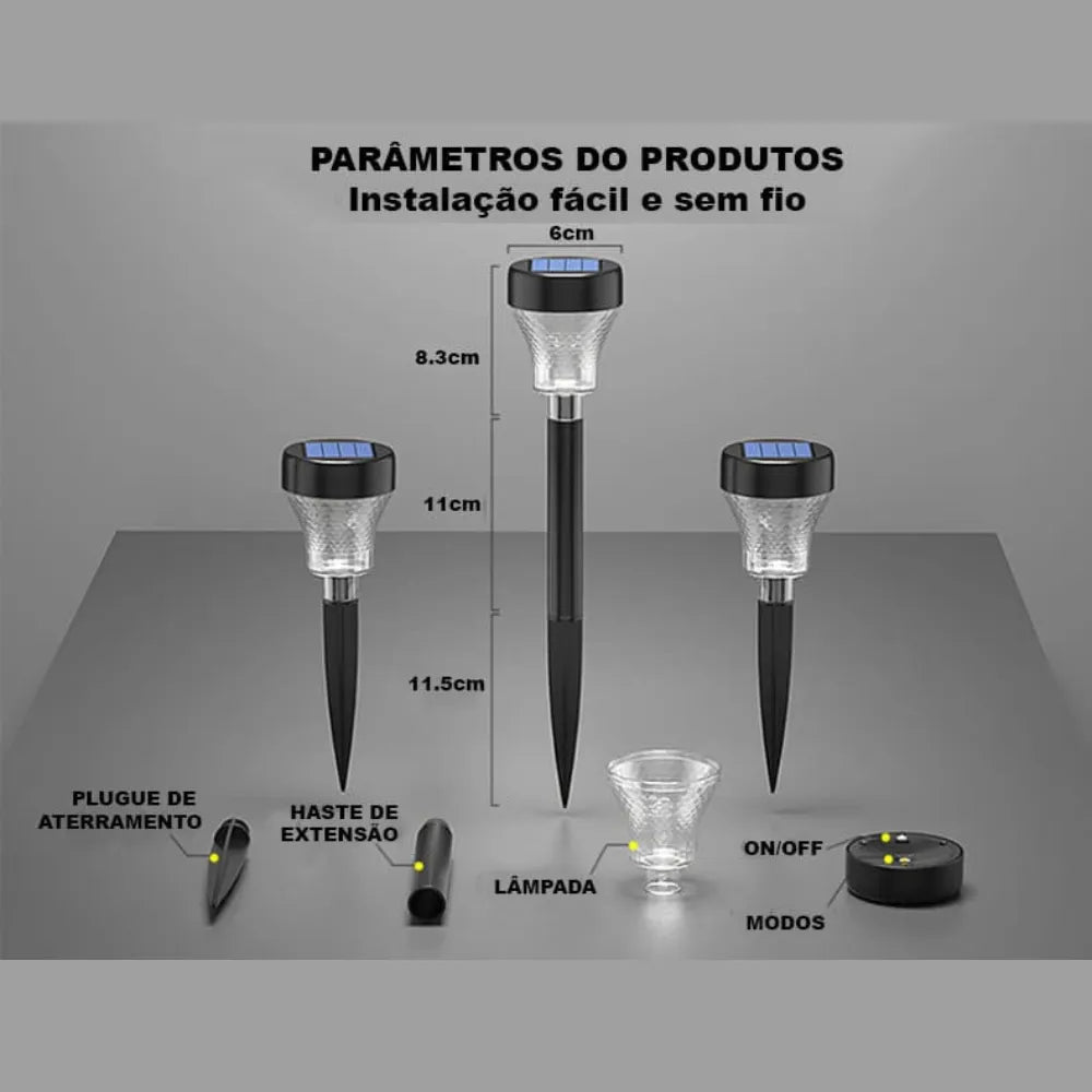 Após um período de carregamento de 6 a 8 horas sob a luz solar direta, elas estão prontas para iluminar seu jardim, caminho da paisagem ou pátio por até 10 horas durante a noite.