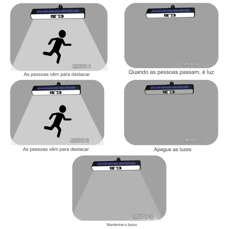 Luz Solar LED Impermeável com Sensor de Movimento