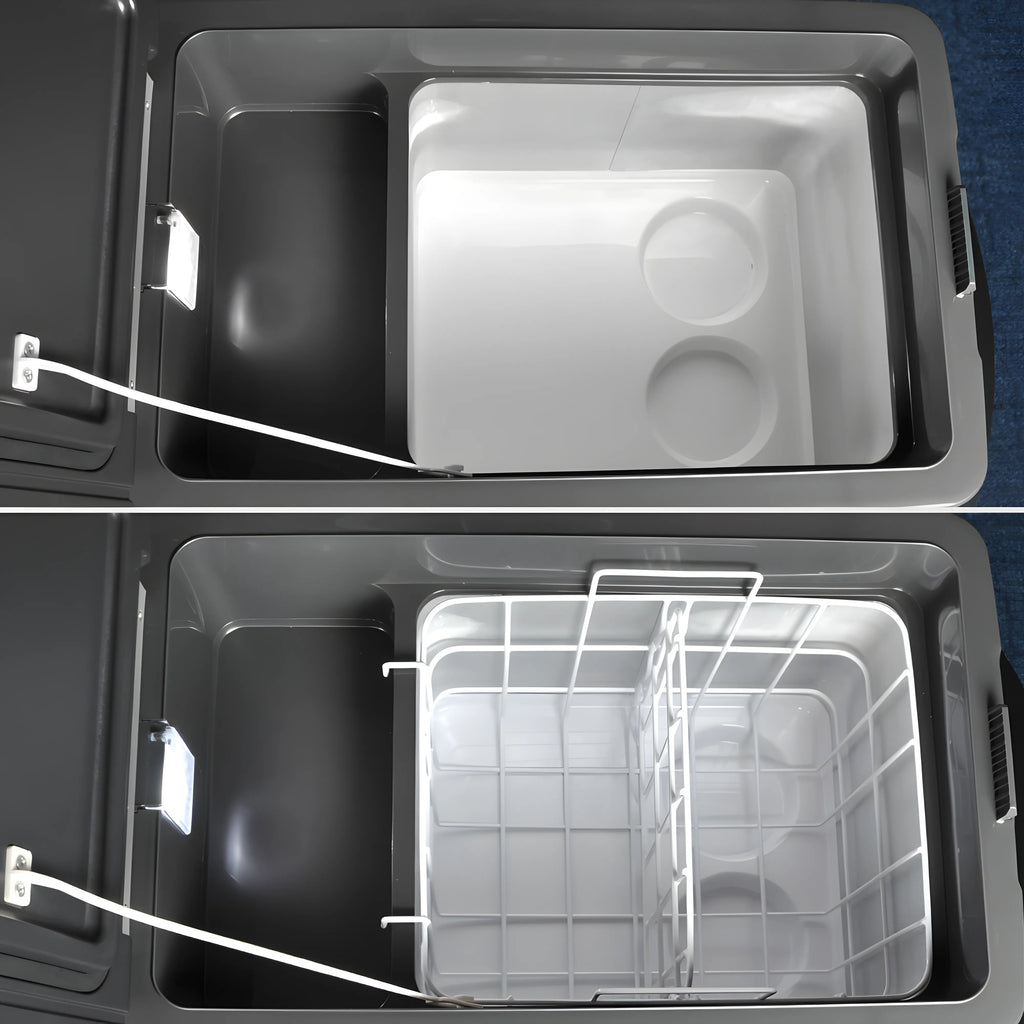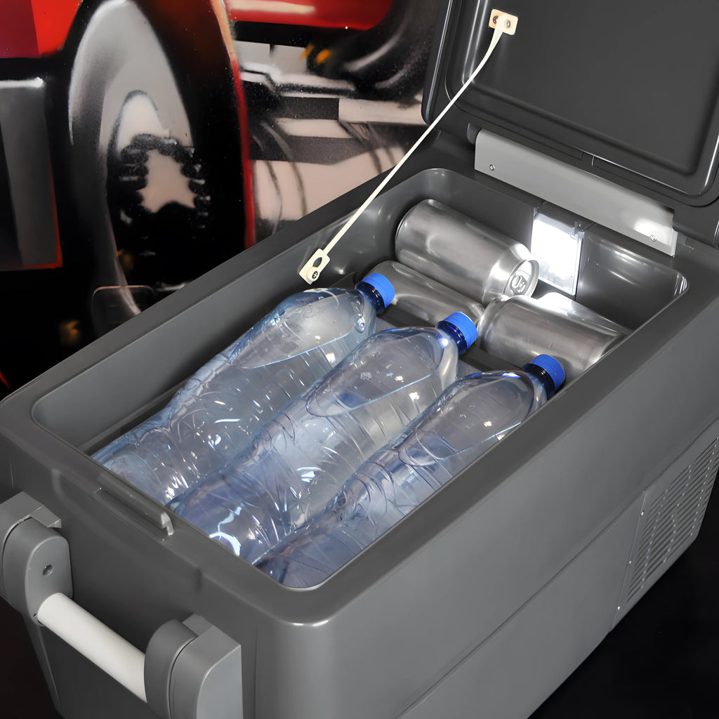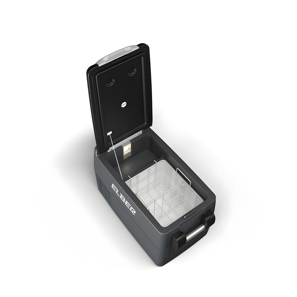 Equipada com um módulo protetor de bateria, a Geladeira Elber CAB 31 possui baixo consumo energético (apenas 3,5 Ah em média após gelada em 12V), evitando o desgaste da bateria do seu veículo e oferecendo tranquilidade mesmo em viagens prolongadas.