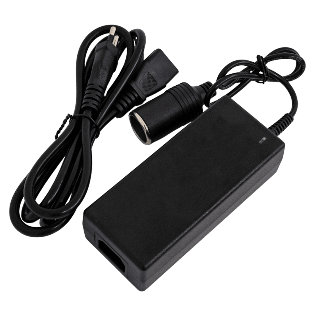 A fonte conversora possui um design simples e eficiente, muito parecido aos carregadores que acompanham os Notebooks e outros aparelhos eletrônicos. Em uma das pontas você tem o adaptador da tomada de isqueiro, que não vai substituir o cabo principal da geladeira, mas sim adaptá-lo. Do outro está a conhecida tomada residencial 3 pinos. A junção dos dois cabos oferece maior área de alcance, garantindo que a geladeira seja disposta no lugar que preferir, sem limitações.