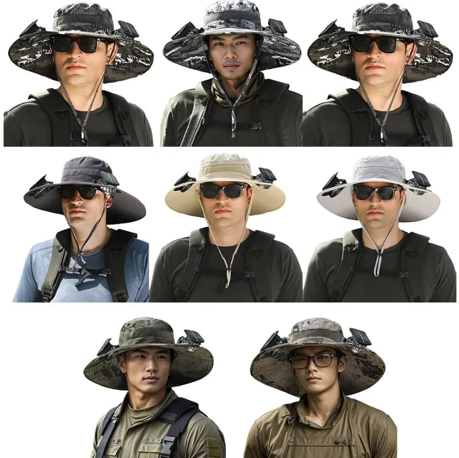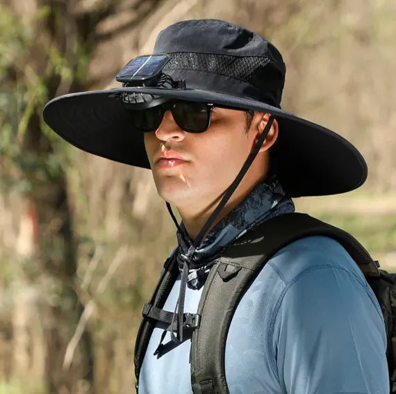 Não sofra mais com o calor intenso de 40 graus! Nosso novo Chapéu Com Ventilador Solar vai te manter fresco e aliviado o dia todo!