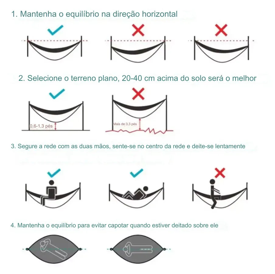 Com o mosquiteiro integrado e um sistema de montagem simples, você pode instalar sua rede em poucos minutos, aproveitando o melhor da natureza sem se preocupar com picadas de insetos.