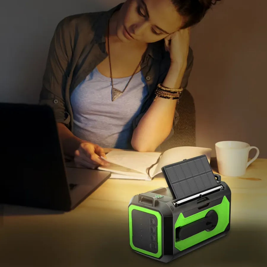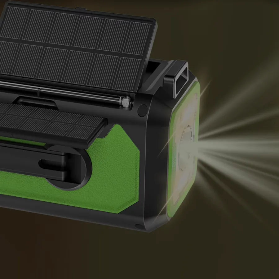 - Energia Sustentável e Autonomia: Painéis solares e manivela manual garantem que você nunca fique sem energia, mesmo sem acesso à eletricidade.