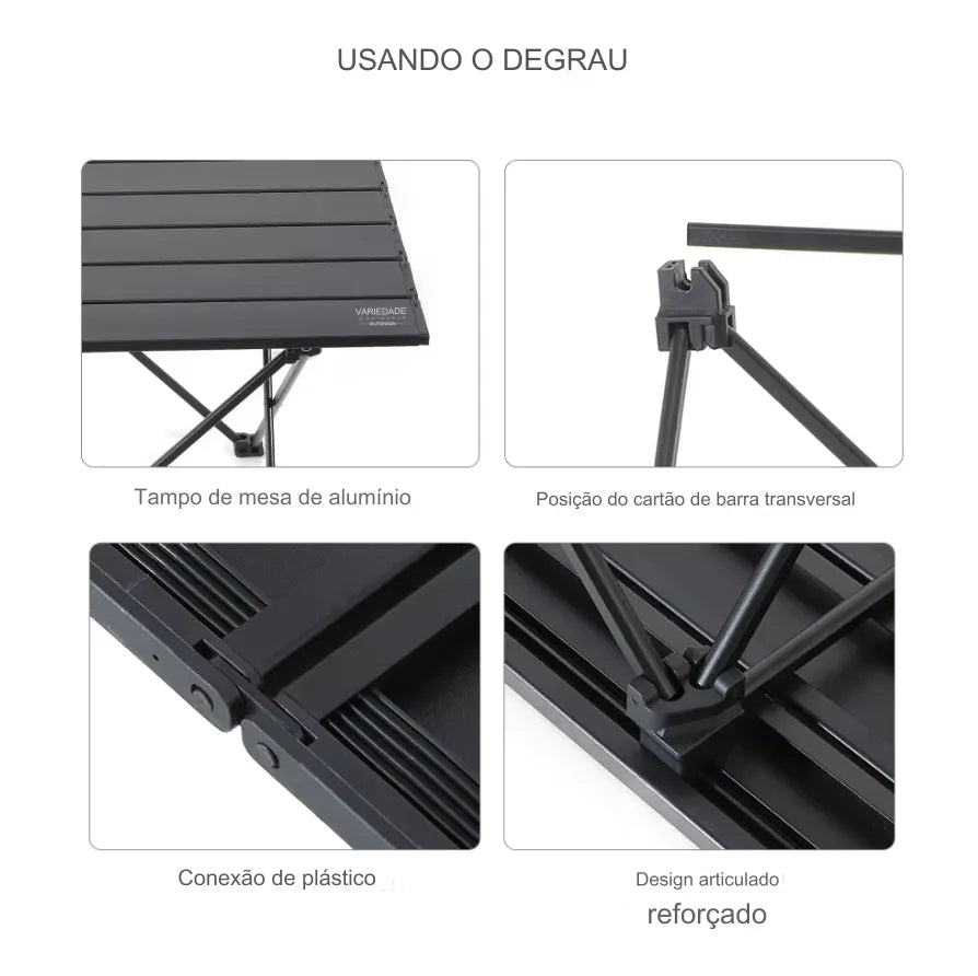 Feita com materiais duráveis e resistentes às condições externas, essa mesa é ideal para qualquer tipo de aventura, oferecendo funcionalidade sem ocupar muito espaço. Desfrute de momentos ao ar livre com mais conforto e organização, sem se preocupar com o transporte de mesas pesadas.