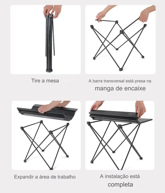 Transportar mesas convencionais para acampamentos e outras atividades ao ar livre pode ser complicado e ocupar muito espaço. Além disso, muitas vezes essas mesas não são feitas para suportar o ambiente externo, podendo desgastar-se rapidamente.