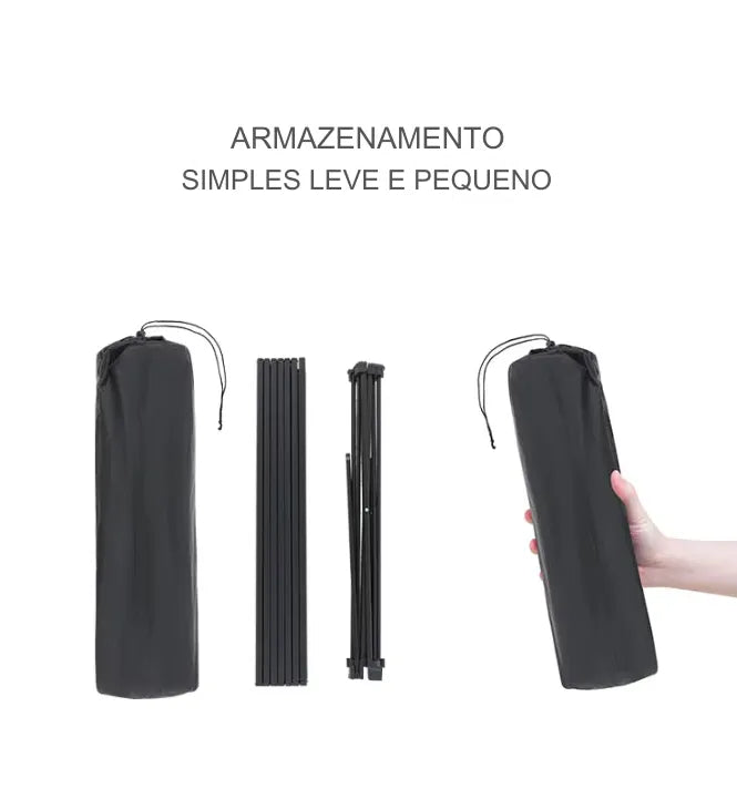 - Portabilidade Máxima: Leve e compacta, cabe facilmente no porta-malas ou mochila, sendo ideal para viagens e acampamentos.